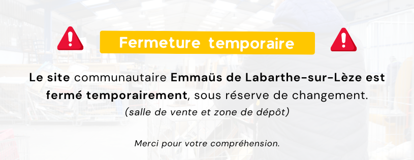 Prolongation de la fermeture exceptionnelle – Emmaüs Labarthe-sur-Lèze ![]()